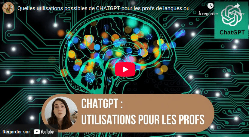 Voilà pour ce qui est des trois utilisations potentielles avec chatgpt ces trois cas de figure si vous en avez d’autres en tête n’hésitez pas à mettre en commentaire ! On pourrait essayer disons que c’est un outil qui devient incontournable c’est pas un des outils les plus intéressants pour nous puisqu’on l’a dit il ne travaille que l’écrit et que nous on travaille quand même sur les différentes activités langagières mais voilà testez vous verrez ! Si vous avez des cas d’usage qui ont bien fonctionné pour vous n’hésitez pas à nous les partager moi ! Pour plus d’articles, c’est par ici. Je vous dis merci et à bientôt !